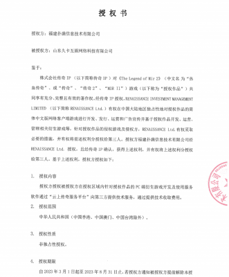 202404-08好体育娱乐在线官网信息技术有限公司(以下简称“我司”)经株式会社传奇IP 、RENAISSANCE INVESTMENT ...