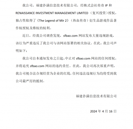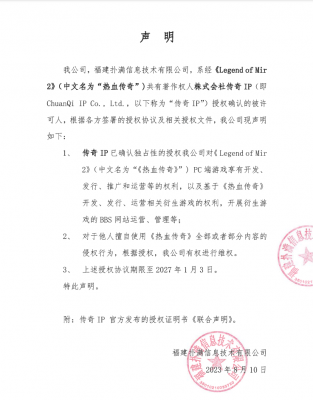 202404-05关于传奇IP已确认对好体育娱乐在线官网授权有效之声明
